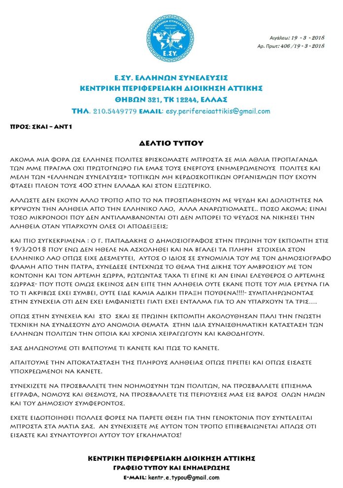 ΠΡΟΣ: ΣΚΑΙ – ΑΝΤ1