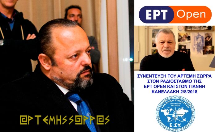 ΗΤΑΝΕ Ο ΚΥΡΙΟΣ ΑΡΤΕΜΗΣ ΣΩΡΡΑΣ Ο ΠΡΟΕΔΡΟΣ ΤΟΥ ΠΟΛΙΤΙΚΟΥ ΦΟΡΕΑ ΠΟΥ ΛΕΓΕΤΑΙ «ΕΛΛΗΝΩΝ ΣΥΝΕΛΕΥΣΙΣ». ΗΤΑΝΕ Η ΣΥΖΗΤΗΣΗ ΜΑΣ ΓΙΑ ΜΙΣΗ ΩΡΑ, ΑΛΛΑ ΕΙΠΩΘΗΚΑΝ ΤΟΣΑ ΕΝΔΙΑΦΕΡΟΝΤΑ ΠΡΑΓΜΑΤΑ ΠΟΥ ΠΑΡΑΤΕΙΝΑΜΕ ΤΗ ΣΥΝΟΜΙΛΙΑ ΜΑΣ ΚΑΙ ΣΥΜΠΛΗΡΩΣΑΜΕ ΜΙΑ ΩΡΑ.