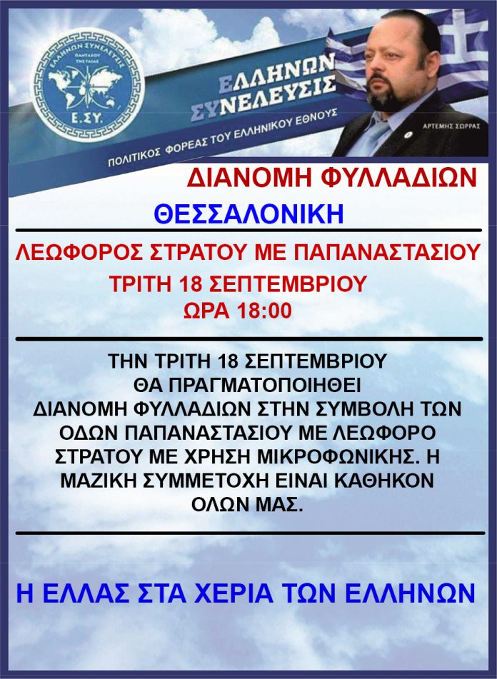 Την Τρίτη 18 Σεπτεμβρίου θα πραγματοποιηθεί δράση ενημέρωσης με διανομή φυλλαδίων στην Θεσσαλονίκη στην συμβολή των οδών Παπαναστασίου με Λεωφόρο Στρατού κοντά στο νοσοκομείο «Θεαγένειο» με ώρα έναρξης στις 6 το απόγευμα.
