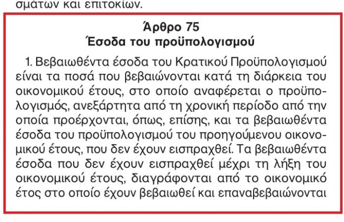 ΟΙ ΚΡΑΤΙΚΟΙ ΠΡΟΥΠΟΛΟΓΙΣΜΟΙ ΚΥΡΩΝΟΝΤΑΙ ΣΤΗΝ ΒΟΥΛΗ ΚΑΘΕ ΤΕΛΟΣ ΤΟΥ ΠΡΟΗΓΟΥΜΕΝΟΥ ΕΤΟΥΣ. ΚΑΘΕ ΧΡΟΝΟ ΣΤΑ ΠΙΣΤΩΤΙΚΑ ΕΣΟΔΑ ΑΝΑΓΡΑΦΟΝΤΑΙ ΠΑΝΩ ΑΠΟ 500 ΔΙΣ ΕΥΡΩ ΑΝ ΔΕΙΤΕ ΤΗΝ ΙΣΟΤΙΜΙΑ ΕΥΡΩ ΔΟΛΑΡΙΟΥ ΤΗΝ ΗΜΕΡΑ ΚΥΡΩΣΗΣ ΤΩΝ ΠΡΟΥΠΟΛΟΓΙΣΜΩΝ ΜΠΟΡΕΙΤΕ ΜΕ ΕΝΑΝ ΠΟΛΛΑΠΛΑΣΙΑΣΜΟ ΝΑ ΒΡΕΙΤΕ ΤΟ ΓΙΝΟΜΕΝΟ 600 ΔΙΣ. ΣΤΟ ΦΕΚ 143 28/6/2014 ΑΡΘΡΟ 75 ΑΝΑΦΕΡΕΤΑΙ ΟΤΙ: «ΒΕΒΑΙΩΘΕΝΤΑ ΕΣΟΔΑ ΤΟΥ ΚΡΑΤΙΚΟΥ ΠΡΟΥΠΟΛΟΓΙΣΜΟΥ ΕΙΝΑΙ ΤΑ ΠΟΣΑ ΠΟΥ ΒΕΒΑΙΩΝΟΝΤΑΙ ΚΑΤΑ ΤΗΝ ΔΙΑΡΚΕΙΑ ΤΟΥ ΟΙΚΟΝΟΜΙΚΟΥ ΕΤΟΥΣ ΣΤΟ ΟΠΟΙΟ ΑΝΑΦΕΡΕΤΑΙ ΟΙ ΠΡΟΥΠΟΛΟΓΙΣΜΟΣ ΑΝΕΞΑΡΤΗΤΑ ΑΠΟ ΤΗΝ ΧΡΟΝΙΚΗ ΠΕΡΙΟΔΟ ΑΠΟ ΤΗΝ ΟΠΟΙΑ ΠΡΟΕΡΧΟΝΤΑΙ ΟΠΩΣ ΕΠΙΣΗΣ ΚΑΙ ΤΑ ΒΕΒΑΙΩΘΕΝΤΑ ΕΣΟΔΑ ΤΟΥ ΠΡΟΥΠΟΛΟΓΙΣΜΟΥ ΤΟΥ ΠΡΟΗΓΟΥΜΕΝΟΥ ΟΙΚΟΝΟΜΙΚΟΥ ΕΤΟΥΣ ΠΟΥ ΔΕΝ ΕΧΟΥΝ ΕΙΣΠΡΑΧΘΕΙ. ΤΑ ΒΕΒΑΙΩΘΕΝΤΑ ΕΣΟΔΑ ΠΟΥ ΔΕΝ ΕΧΟΥΝ ΕΙΣΠΡΑΧΘΕΙ ΜΕΧΡΙ ΤΗΝ ΛΗΞΗ ΤΟΥ ΟΙΚΟΝΟΜΙΚΟΥ ΕΤΟΥΣ ΔΙΑΓΡΑΦΟΝΤΑΙ ΑΠΟ ΤΟ ΟΙΚΟΝΟΜΙΚΟ ΕΤΟΣ ΣΤΟ ΟΠΟΙΟ ΕΧΟΥΝ ΒΕΒΑΙΩΘΕΙ ΚΑΙ ΕΠΑΝΑΒΕΒΑΙΩΝΟΝΤΑΙ ΩΣ ΕΣΟΔΑ ΤΟΥ ΠΡΟΥΠΟΛΟΓΙΣΜΟΥ ΤΟΥ ΕΠΟΜΕΝΟΥ ΟΙΚΟΝΟΜΙΚΟΥ ΕΤΟΥΣ.»
