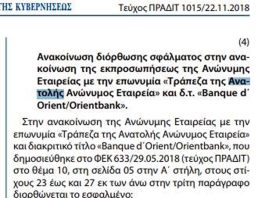 Η ΜΕΤΟΧΗ ΤΗΣ ΤΡΑΠΕΖΑΣ ΤΗΣ ΑΝΑΤΟΛΗΣ’ ‘ΚΙΤΡΙΝΟΣ ΤΥΠΟΣ’ 10/10/11