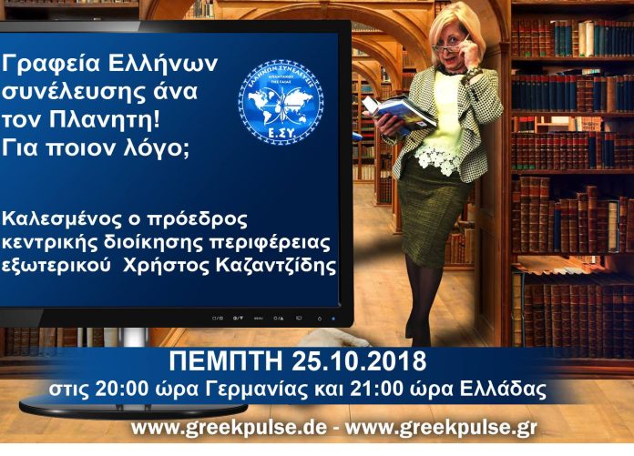 Ο ΧΡΗΣΤΟΣ ΚΑΖΑΝΤΖΙΔΗΣ ΠΡΟΕΔΡΟΣ ΤΗΣ ΔΙΟΙΚΗΣΗΣ ΠΕΡΙΦΕΡΕΙΑΣ ΕΞΩΤΕΡΙΚΟΥ ΕΛΛΗΝΩΝ ΣΥΝΕΛΕΥΣΙΣ ΣΤΟΝ GREEKPULSE ΣΤΟΥΤΓΚΑΡΔΗΣ ΠΕΜΠΤΗ 25/10/2018