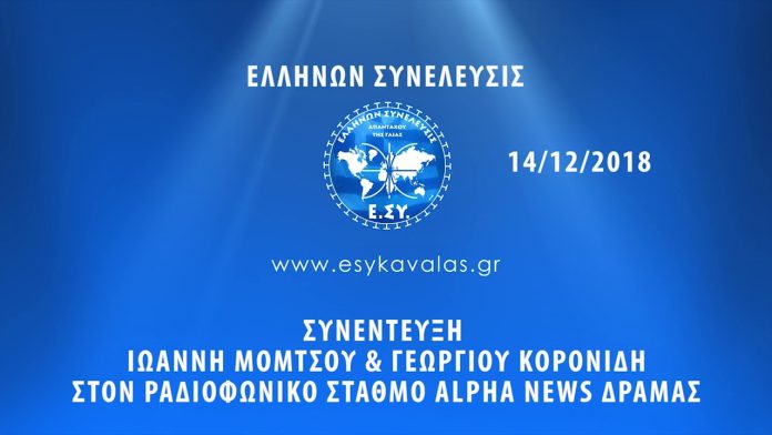 ΣΥΝΕΝΤΕΥΞΗ ΙΩΑΝΝΗ ΜΟΜΤΣΟΥ ΚΑΙ ΓΕΩΡΓΙΟΥ ΚΟΡΟΝΙΔΗ ΣΤΟΝ ALPHA NEWS ΔΡΑΜΑΣ 14-12-2018