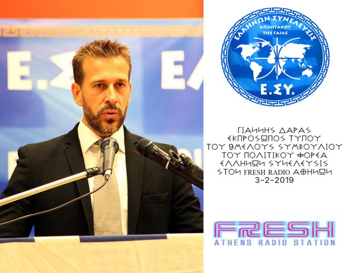 Ο ΓΙΑΝΝΗΣ ΔΑΡΑΣ ΕΚΠΡΟΣΩΠΟΣ ΤΥΠΟΥ ΤΟΥ 9ΜΕΛΟΥΣ ΣΥΜΒΟΥΛΙΟΥ ΤΟΥ ΠΟΛΙΤΙΚΟΥ ΦΟΡΕΑ ΕΛΛΗΝΩΝ ΣΥΝΕΛΕΥΣΙΣ ΖΩΝΤΑΝΑ ΣΤΟΝ FRESH RADIO ΑΘΗΝΩΝ 3-2-2019