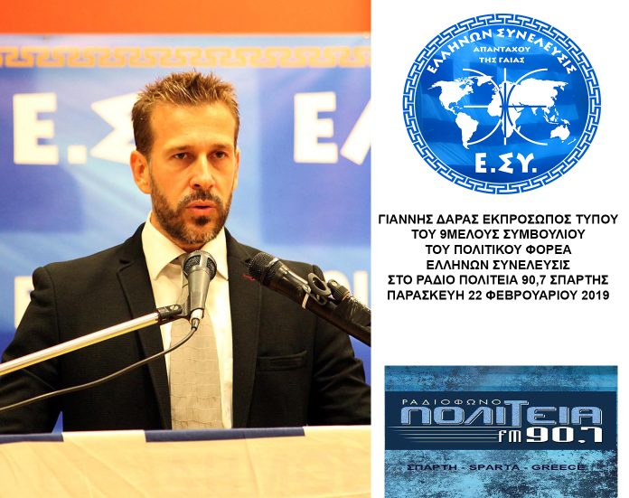 Ο ΓΙΑΝΝΗΣ ΔΑΡΑΣ ΕΚΠΡΟΣΩΠΟΣ ΤΥΠΟΥ ΚΑΙ ΜΕΛΟΣ ΤΟΥ 9ΜΕΛΟΥΣ ΣΥΜΒΟΥΛΙΟΥ ΤΟΥ ΠΟΛΙΤΙΚΟΥ ΦΟΡΕΑ ΕΛΛΗΝΩΝ ΣΥΝΕΛΕΥΣΙΣ ΣΤΟ ΡΑΔΙΟ ΠΟΛΙΤΕΙΑ 90,7 ΣΠΑΡΤΗΣ 22-2-2019