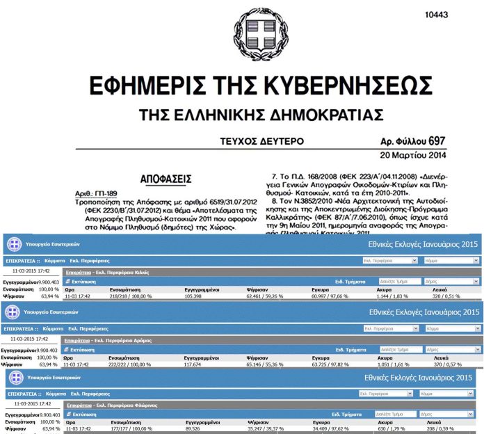 ΟΙ ΕΓΓΕΓΡΑΜΜΕΝΟΙ ΣΤΟΥΣ ΕΚΛΟΓΙΚΟΥΣ ΚΑΤΑΛΟΓΟΥΣ ΣΤΙΣ ΕΚΛΟΓΕΣ ΤΟΥ ΙΑΝΟΥΑΡΙΟΥ 2015, ΣΕ ΠΟΛΛΕΣ ΠΕΡΙΦΕΡΕΙΑΚΕΣ ΕΝΟΤΗΤΕΣ ΕΙΝΑΙ ΠΕΡΙΣΣΟΤΕΡΟΙ ΑΠΟ ΤΟΝ ΝΟΜΙΜΟ ΠΛΗΘΥΣΜΟ ΠΟΥ ΝΟΜΙΜΟΠΟΙΕΙΤΑΙ ΣΤΟ ΦΕΚ ΑΡ. 697/20-3-2014!