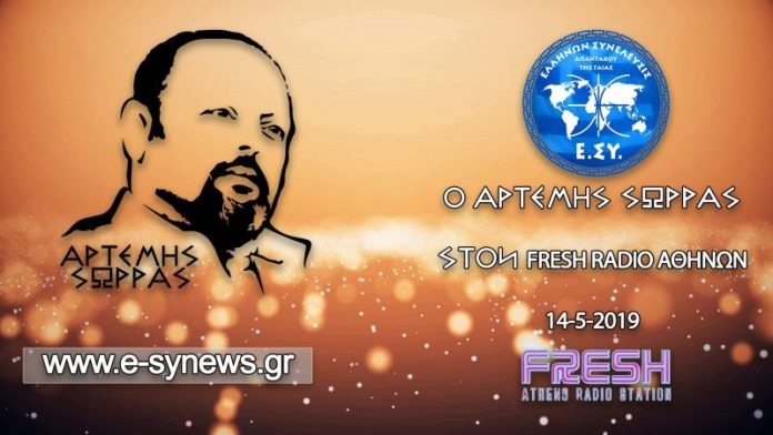 Ο ΑΡΤΕΜΗΣ ΣΩΡΡΑΣ ΠΡΟΕΔΡΟΣ ΤΟΥ ΠΟΛΙΤΙΚΟΥ ΦΟΡΕΑ ΕΛΛΗΝΩΝ ΣΥΝΕΛΕΥΣΙΣ & ΥΠΟΨΗΦΙΟΣ ΕΥΡΩΒΟΥΛΕΥΤΗΣ ΣΤΟΝ FRESH RADIO ΑΘΗΝΩΝ 14-5-2019