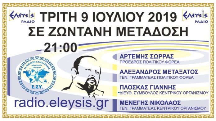 ΤΡΙΤΗ 9 ΙΟΥΛΙΟΥ ΣΤΙΣ 9 ΤΟ ΒΡΑΔΥ Ο ΑΡΤΕΜΗΣ ΣΩΡΡΑΣ ΖΩΝΤΑΝΑ ΣΤΟ ΡΑΔΙΟ ΕΛΕΥΣΙΣ