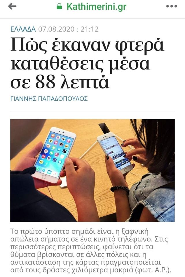 Η συγκεκριμένη απάτη αποκαλείται «SIM swap» και, όπως είχε παρουσιάσει πρόσφατα η «Κ», από τις αρχές του 2020, τουλάχιστον 40 σχετικές καταγγελίες έχουν γίνει στη Δίωξη Ηλεκτρονικού Εγκλήματος.