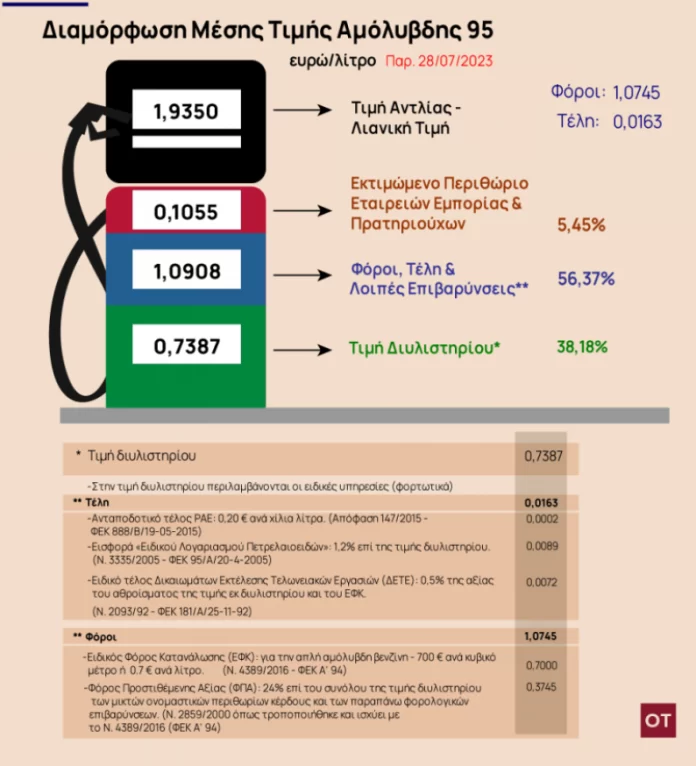 Η έρευνα του Οικονομικού Ταχυδρόμου (ΟΤ) είναι αποκαλυπτική ως προς το μέγεθος των διακυμάνσεων των τιμών αλλά και από ένα πάρτι κερδών που φαίνεται ότι έχει στηθεί ιδίως στις νησιωτικές περιοχές. Το πλαφόν… της κυβέρνησης μοιάζει με ασπιρίνη απέναντι στην τιμή των 3 ευρώ που άγγιξε η απλή αμόλυβδη, σύμφωνα με επίσημα στοιχεία που αποκαλύπτει ο ΟΤ.