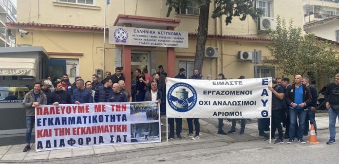 Συγκέντρωση διαμαρτυρίας για την υποστελέχωση πραγματοποιούν αυτή την ώρα αστυνομικοί έξω από το Αστυνομικό Τμήμα του Ευόσμου. Η Ένωση Αστυνομικών Υπαλλήλων Θεσσαλονίκης, ζητά άμεσα μέτρα για την ενίσχυση των υπηρεσιών και των τμημάτων και να ανασταλεί η διαταγή για απόσπαση 60 αστυνομικών στην Τροχαία.