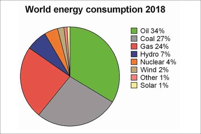 Παγκόσμια κατανάλωση ενέργειας ανά πηγή, 2018. Στοιχεία από την BP (2019)