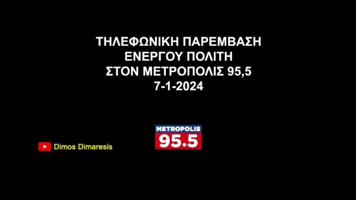 Τηλεφωνική παρέμβαση πολίτη στον Metropolis 95.5 στις 7/01/2024 σχετικά με τα έσοδα του κρατικού προϋπολογισμού. Η αντίδραση του ραδιοφωνικού παραγωγού είναι ειρωνική και αγενής.