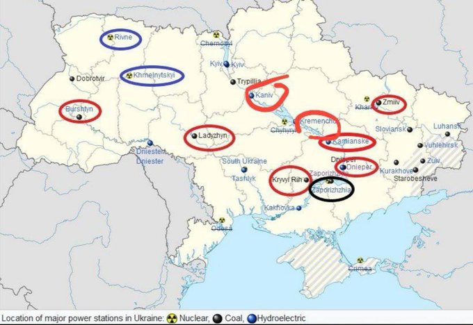 Ο χάρτης που ακολουθεί είναι κατατοπιστικός και δείχνει το πρόβλημα που θα αντιμετωπίσει Ουκρανία και ειδικότερα οι ένοπλες δυνάμεις της οι οποίες χωρίς επαρκή ποσότητα ηλεκτρικού ρεύματος δεν μπορούν να λειτουργήσουν.