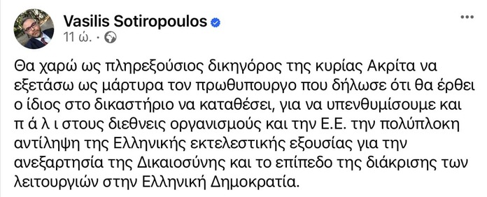Η Έλενα Ακρίτα επανήλθε με νέα της ανάρτηση σήμερα αναφέροντας ότι: