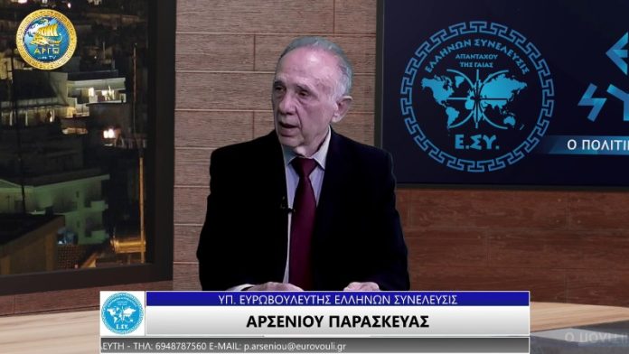 Ο ΥΠΟΨΗΦΙΟΣ ΕΥΡΩΒΟΥΛΕΥΤΗΣ ΜΕ ΤΗΝ ΕΛΛΗΝΩΝ ΣΥΝΕΛΕΥΣΙΣ ΠΑΡΑΣΚΕΥΑΣ ΑΡΣΕΝΙΟΥ ΣΤΗΝ ΕΚΠΟΜΠΗ “ΜΕ ΤΑ ΜΑΤΙΑ ΤΟΥ ΕΛΛΗΝΑ” ΜΕ ΤΟΝ ΣΤΑΘΗ ΚΛΑΓΚΑ ΣΤΟ ΑΡΓΩ WEB TV. Στις ημέρες μας οι σημαντικότερες αποφάσεις για την ζωή μας παίρνονται στην ΕΕ (Ευρωπαϊκό Κοινοβούλιο). Από εκεί έρχονται ως κανονισμοί και οδηγίες. Η Βουλή μας πληροφορείτε, τις συζητά και τις ενσωματώνει στην εγχώρια νομοθεσία χωρίς να τις επικυρώνει. Γεωργία, κτηνοτροφία, αλιεία, βιομηχανία, νερό, αέρας, γη και όλα όσα μας αφορούν για να έχουμε μια υγιή, αξιοπρεπή και ασφαλή ζωή είναι ουσιαστικά στα χέρια της Ε.Ε. Και εύλογα αναρωτιέται κάποιος πως επικράτησε αυτό; Δεν πρέπει να το μάθουμε όλοι, αφού όλοι μας συμμετέχουμε σε αυτήν την κοινοπραξία;
