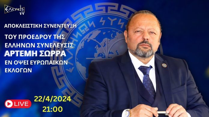 Ο Πρόεδρος του Πολιτικού Φορέα, “ΕΛΛΗΝΩΝ ΣΥΝΕΛΕΛΕΥΣΙΣ”, ΑΡΤΕΜΗΣ ΣΩΡΡΑΣ σε μια αποκαλυπτική συνέντευξη στο ΕΛΕΥΣΙΣ ΤV εν όψει των Ευρωπαϊκών Εκλογών.