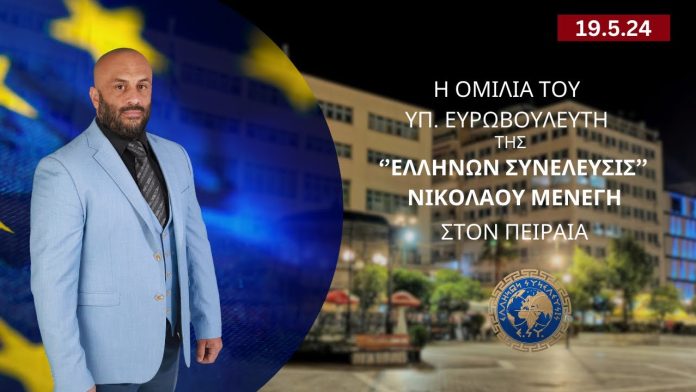 Η ΟΜΙΛΙΑ ΤΟΥ ΥΠ. ΕΥΡΩΒΟΥΛΕΥΤΗ ΤΗΣ ΕΛΛΗΝΩΝ ΣΥΝΕΛΕΥΣΙΣ ΝΙΚΟΛΑΟΥ ΜΕΝΕΓΗ ΣΤΟΝ ΠΕΙΡΑΙΑ ΣΤΗΝ ΠΛΑΤΕΙΑ ΚΟΡΑΗ