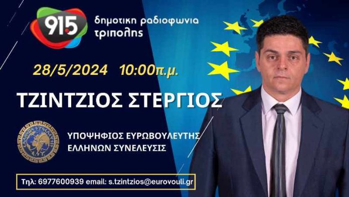 Ο Υποψήφιος Ευρωβουλευτής με τον Πολιτικό Φορέα Ελλήνων Συνέλευσις Στέργιος Τζίντζιος στην Δημοτική Ραδιοφωνία Τρίπολης Τρίτη 28 Μαίου 2024.