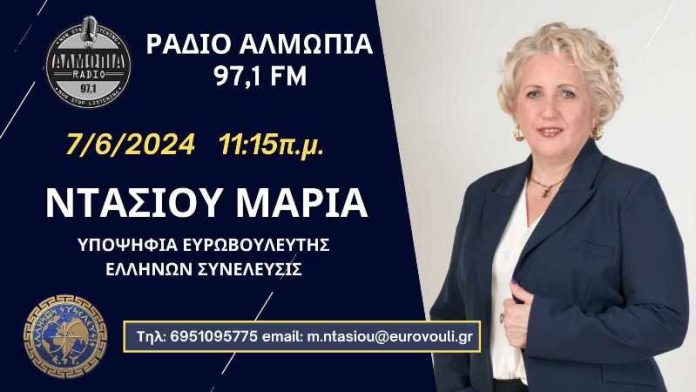 Η Υποψήφια Ευρωβουλευτής με τον Πολιτικό Φορέα Ελλήνων Συνέλευσις Μαρία Ντάσιου στο Ράδιο Αλμωπία Παρασκευή 7 Ιουνίου 2024.