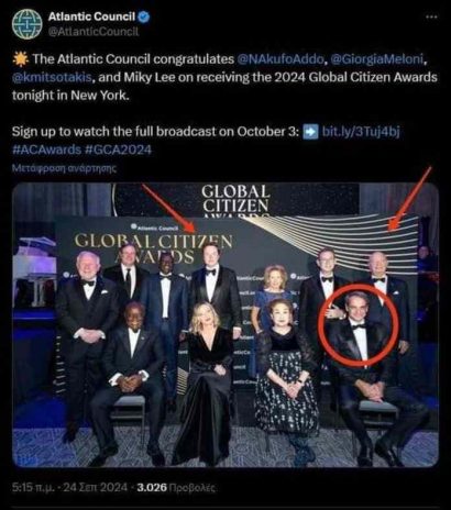 Βράβευση του Μητσοτάκη στη Νέα Υόρκη: Δίπλα του οι Σβαμπ, Μελόνι και Μασκ. Μεγάλες… τιμές για τον Έλληνα πρωθυπουργό που μόλις πριν λίγες ώρες είχε ζητήσει από το βήμα του ΟΗΕ «παγκόσμια διακυβέρνηση».