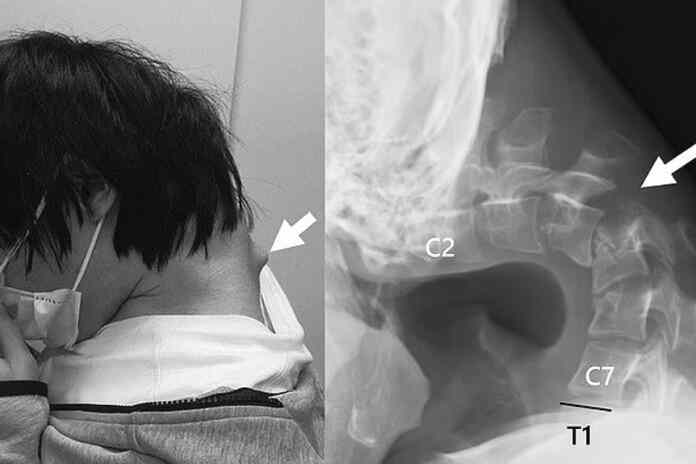 Μετά από έξι μήνες έντονου αυχενικού πόνου και με εμφανή δυσκολία να σηκώσει το κεφάλι του, ο άνδρας αναζήτησε ιατρική βοήθεια. Επιπλέον, παρουσίαζε προβλήματα στην κατάποση, γεγονός που τον οδήγησε σε σημαντική απώλεια βάρους.