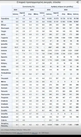 Την ώρα που η ανεργία στην Ευρωζώνη και την Ευρωπαϊκή Ένωση δείχνει τάσεις σταθεροποίησης ή και μείωσης, η Ελλάδα απουσιάζει από τη μηνιαία έκθεση της Eurostat για τον Ιούνιο του 2025, καθώς δεν απέστειλε τα απαραίτητα στοιχεία.