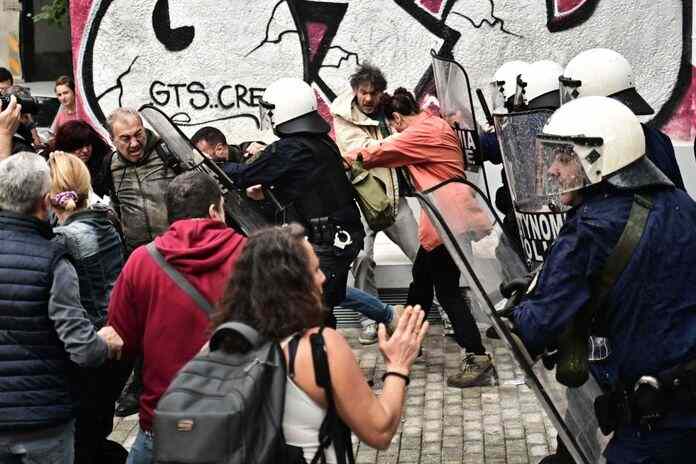 Επίθεση με χημικά και ξύλο από τη συμμορία της ΕΛ.ΑΣ στους γονείς και τα παιδιά τους που κάνανε συγκέντρωση και κατάληψη στο κτήριο της Πρωτοβάθμιας, για τις συγχωνεύσεις τμημάτων .