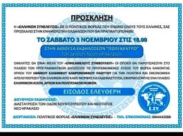 ΠΡΟΣΚΛΗΣΗ ΣΕ ΜΕΓΑΛΗ ΟΜΙΛΙΑ ΕΝΗΜΕΡΩΣΗΣ ΣΗΜΕΡΑ ΑΠΟ ΤΟΝ ΠΟΛΙΤΙΚΟ ΦΟΡΕΑ «ΕΛΛΗΝΩΝ...