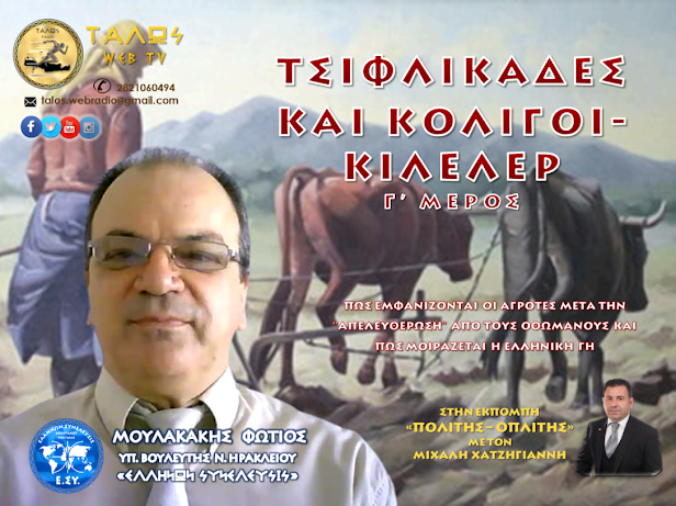 ΤΟ ΘΕΜΑ ΤΗΣ ΚΑΤΑΝΟΜΗΣ ΚΑΙ ΙΔΙΟΚΤΗΣΙΑΣ ΤΗΣ ΓΗΣ ΘΑ ΜΑΣ ΑΝΑΠΤΥΞΕΙ Ο ΚΥΡΙΟΣ ΦΩΤΗΣ ΜΟΥΛΑΚΑΚΗΣ, ΥΠ. ΒΟΥΛΕΥΤΗΣ Ν. ΗΡΑΚΛΕΙΟΥ ΜΕ ΤΗΝ ΕΛΛΗΝΩΝ ΣΥΝΕΛΕΥΣΙΣ, ΚΑΛΕΣΜΕΝΟΣ ΣΤΗΝ ΕΚΠΟΜΠΗ ΤΟΥ ΡΑΔΙΟ ΤΑΛΩΣ ”ΠΟΛΙΤΗΣ – ΟΠΛΙΤΗΣ” ΜΕ ΤΟΝ ΜΙΧΑΛΗ ΧΑΤΖΗΓΙΑΝΝΗ.